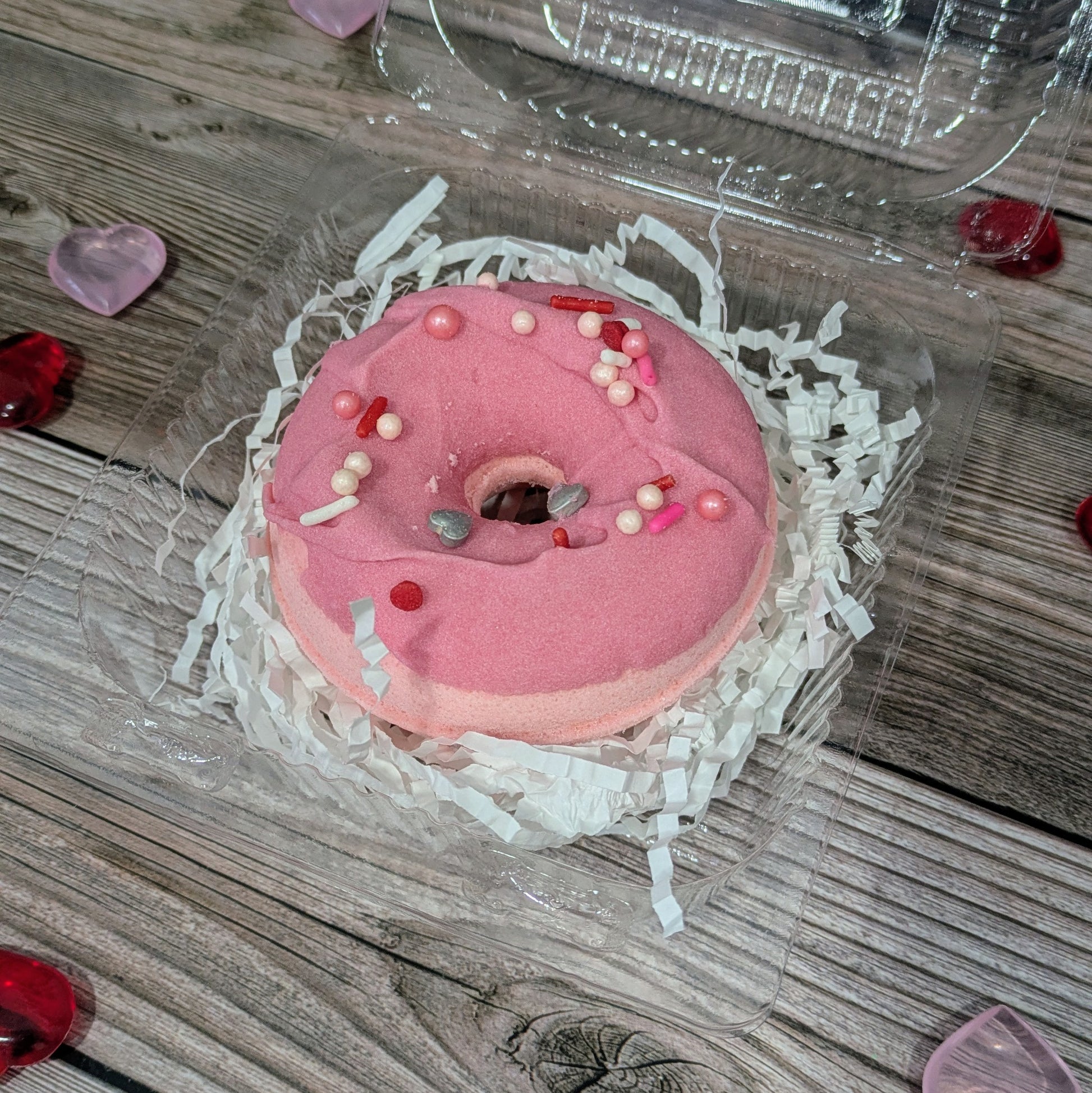 Sink into pure indulgence with our Be Mine Raspberry Bubbling Donut Bath Bomb—a delightful treat for your tub! Watch as this whimsical donut-shaped fizzer releases a cascade of skin-loving foam and releases the sweet, fruity aroma of fresh raspberries. Perfect for transforming your bath into a spa-like escape or gifting to someone special. Let the gentle fizz and luxurious feel melt away the day's stress while you soak in raspberry-scented bliss. Because self-care should be as fun and delicious as dessert!